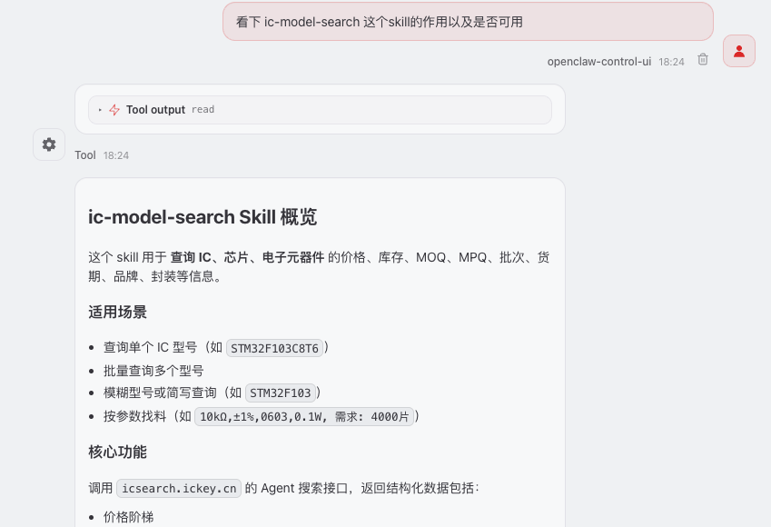 Skill目前提供元器件搜索能力,后续将持续扩展更多采购场景