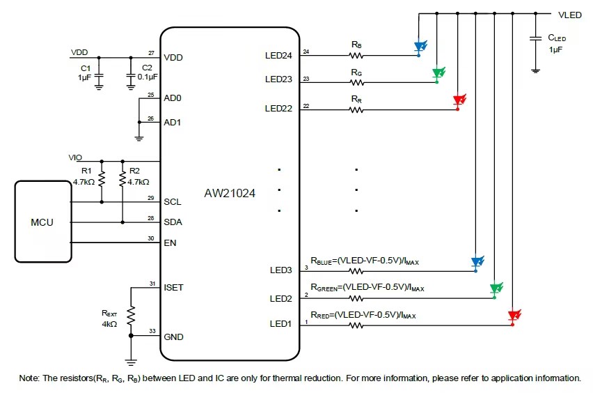▪高精度多通道驱动:24通道独立8位PWM调光与8位电流调节,通道/芯片间误差仅±5%,确保颜色亮度一致。