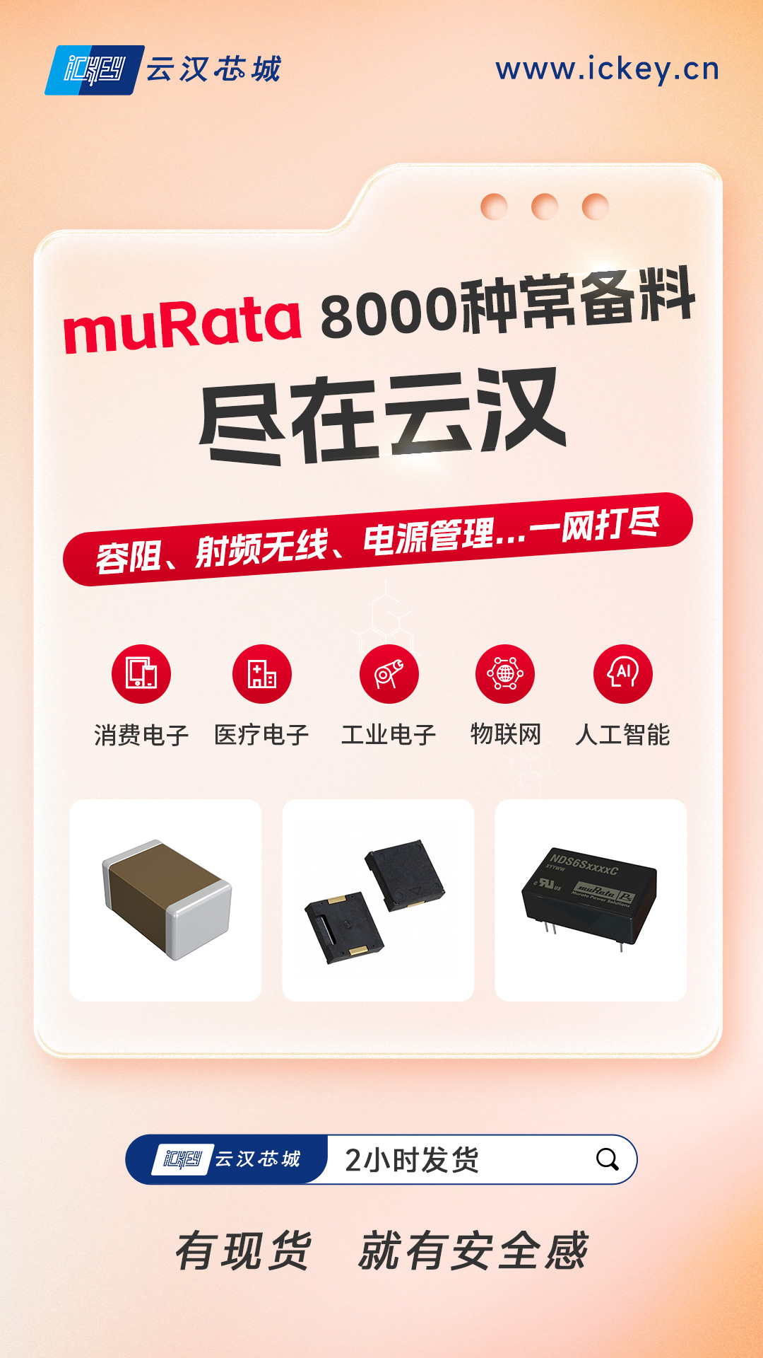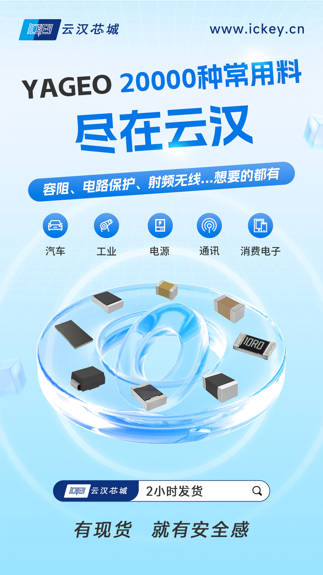 2、交期有数:现货最快2小时发货,生产计划稳如泰山最怕“等料不确定”?稳定交付就是硬实力。云汉芯城依托2.5万平方米订单履约中心+智能化仓储物流体系,现货可实现最快2小时发货,把“交期焦虑”变成“可控的计划”!