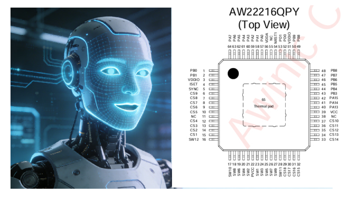在服务机器人、工业协作机器人与消费级仿生机器人加速普及的今天,“表情化交互”与“状态可视化”已成为提升用户体验的关键突破口。艾为电子推出的AW22216智能LED驱动芯片,以“高集成度控制+低功耗设计+全场景视觉解决方案”三大优势,为机器人行业提供从核心控制到视觉呈现的一站式技术支持,让冰冷的机器拥有丰富的“表情语言”与精准的“状态反馈”。