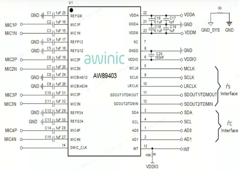 AW89403QNR采用双通道音频架构设计,在3.3V工作电压下实现108dB的信噪比(SUMON模式),配合-95dB的总谐波失真,确保机器人在嘈杂工业环境或家庭复杂声场中仍能捕捉清晰语音指令。其集成的低延迟滤波器将语音信号处理延迟控制在10ms以内,完美匹配实时交互场景需求,让机器人响应如人类对话般自然流畅。